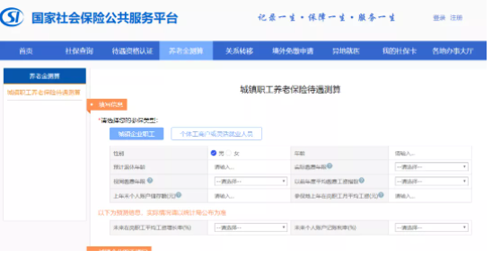 人社部于2019年底通過國家社會保險公共服務平臺開通了養(yǎng)老金測算服務,目前支持的是城鎮(zhèn)企業(yè)職工、個體工商戶或靈活就業(yè)人員的養(yǎng)老金測算。